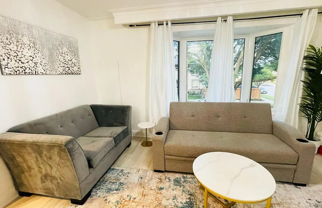 Home Near Toronto Pearson Airportアパ-トメントには,器具でいっぱいの台所,ソファ,衛星放送チャンネルの薄型テレビ と多重チャンネルテレビ付きの客室があります. アパ-トメントはウェストウッド・アリ-ナスから4.8キロ,ハビタント アリ-ナから6キロです.